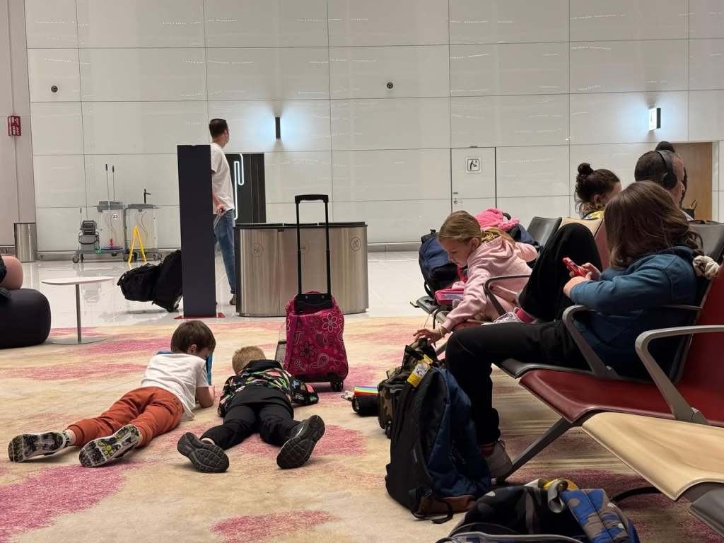Post-kid travel: cardio workout featuring luggage, children, snacks, and mild desperation.