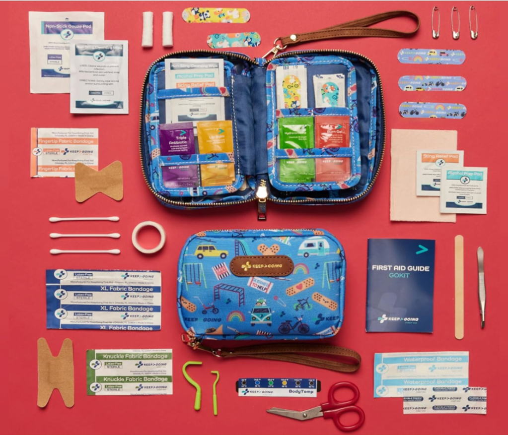 I never travel without my mini parenting pharmacy: Destin/Butt Paste, a thermometer for those “wait… do you feel warm?” moments, plus Tylenol, Motrin, and Benadryl. Because diaper rash, fevers, teething, and surprise allergies have zero respect for your travel plans. Hope for the best, pack for the turbulence.